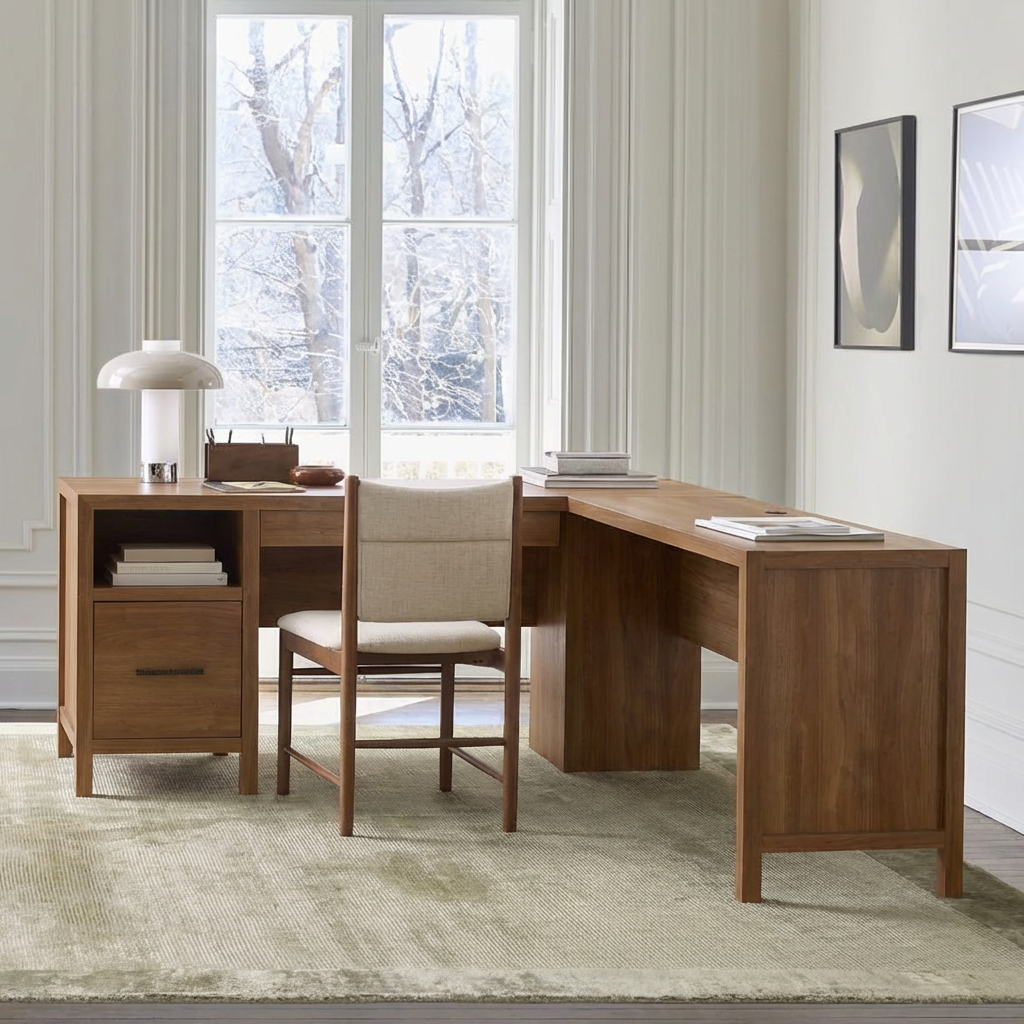 This minimalist work desk is designed for residential indoor use, providing a stable and functional surface or structure depending on its category. The construction supports everyday household activities such as placement, storage, seating, or organization within living rooms, bedrooms, dining areas, or office environments. The design integrates with standard furniture layouts and is intended for regular use in residential settings. Materials and structure are suited for routine indoor conditions, allowing consistent use without specialized installation. This product is suitable for placement in homes where practical functionality and compatibility with existing furniture arrangements are required.
