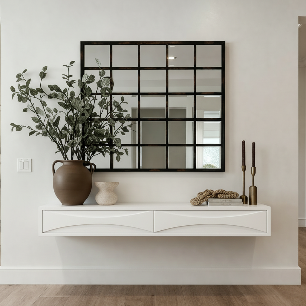 A modern console table designed for everyday residential use, suitable for indoor placement and routine household functionality.